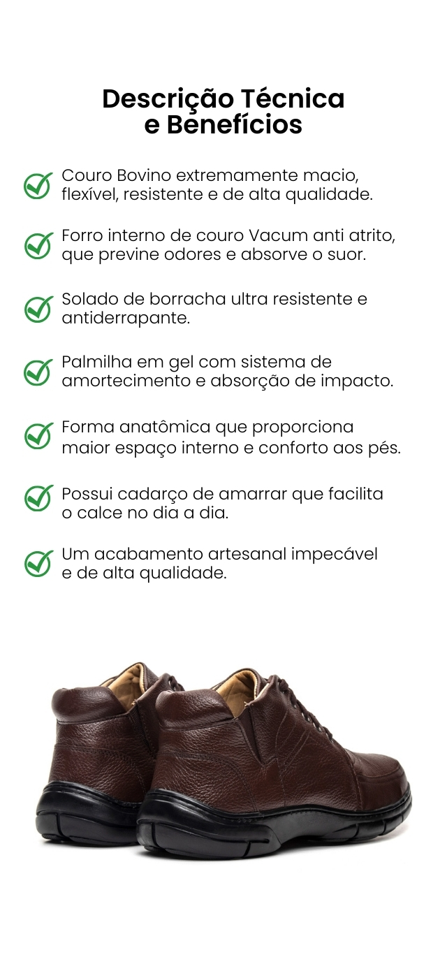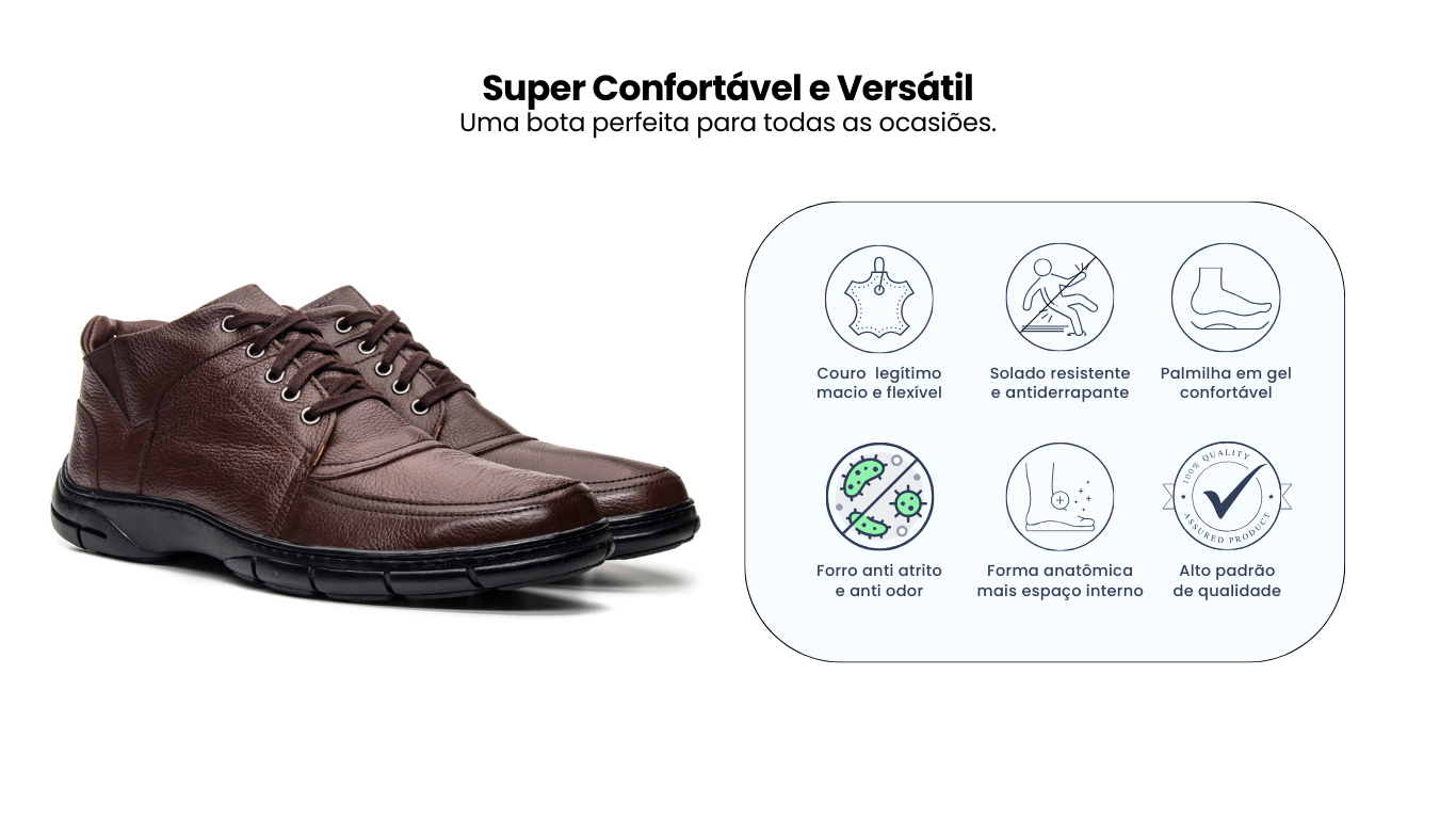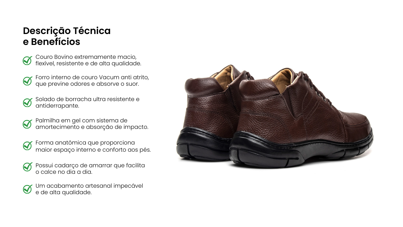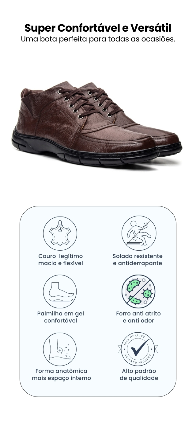 Bota Masculina de Couro Legítimo Comfort Shoes - 1405 Café
