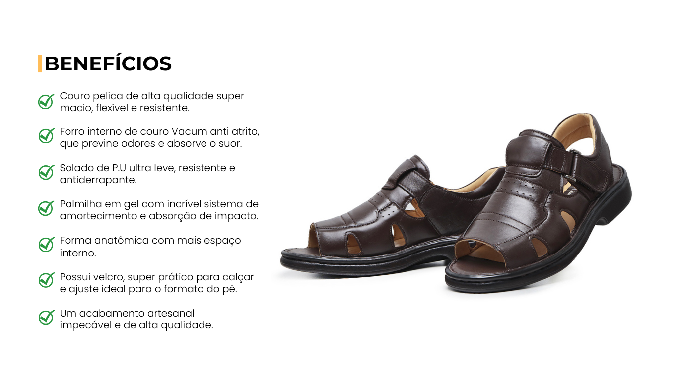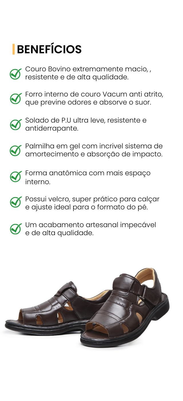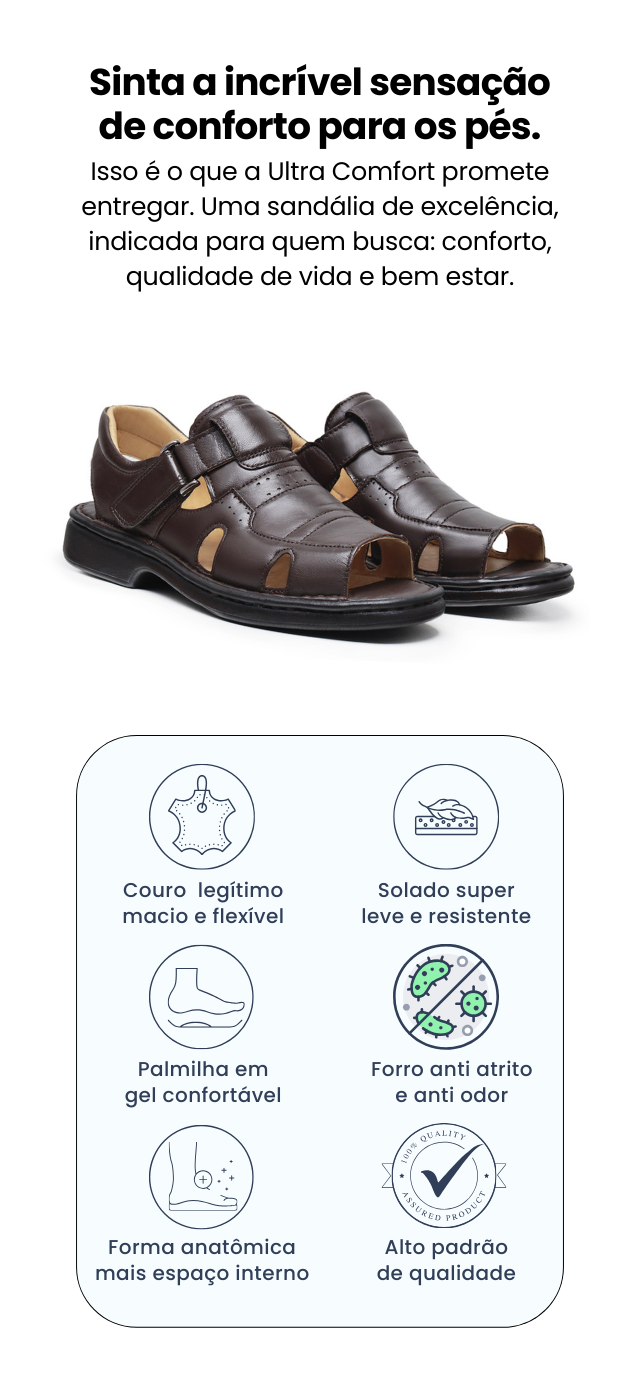 Sandália Masculina De Couro Legítimo Ultra Comfort - CS360 Café