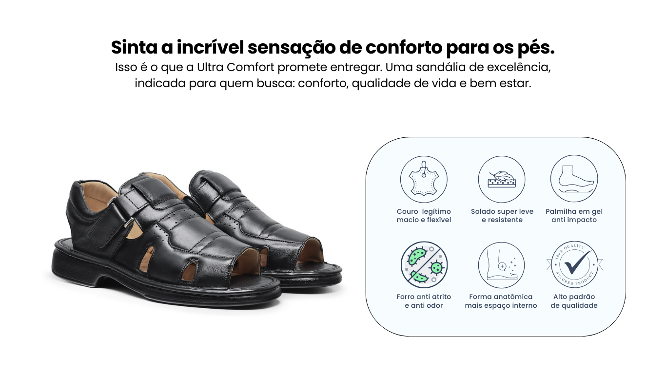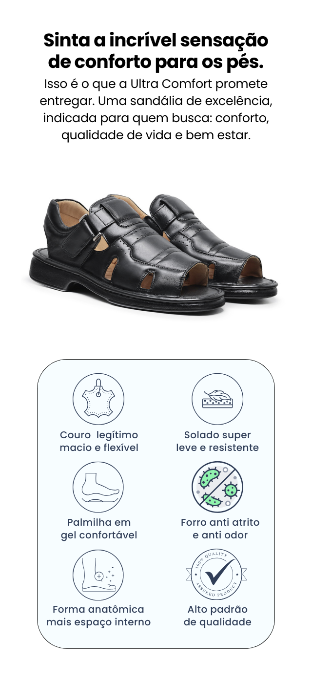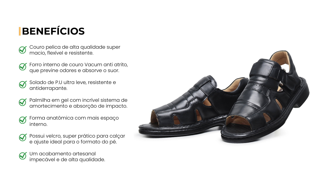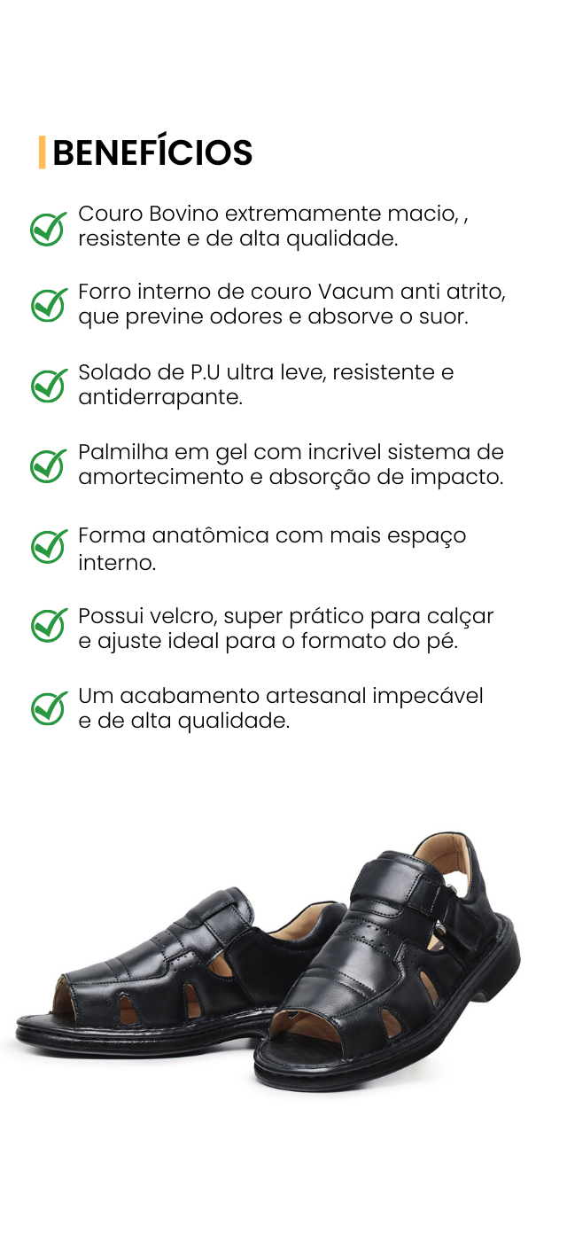 Sandália Masculina De Couro Legítimo Ultra Comfort - CS360 Preta