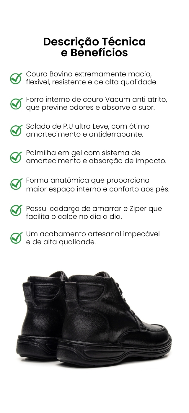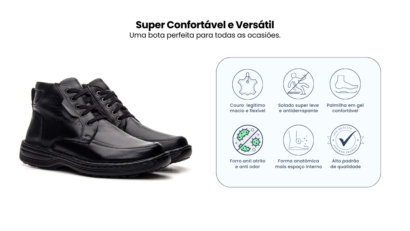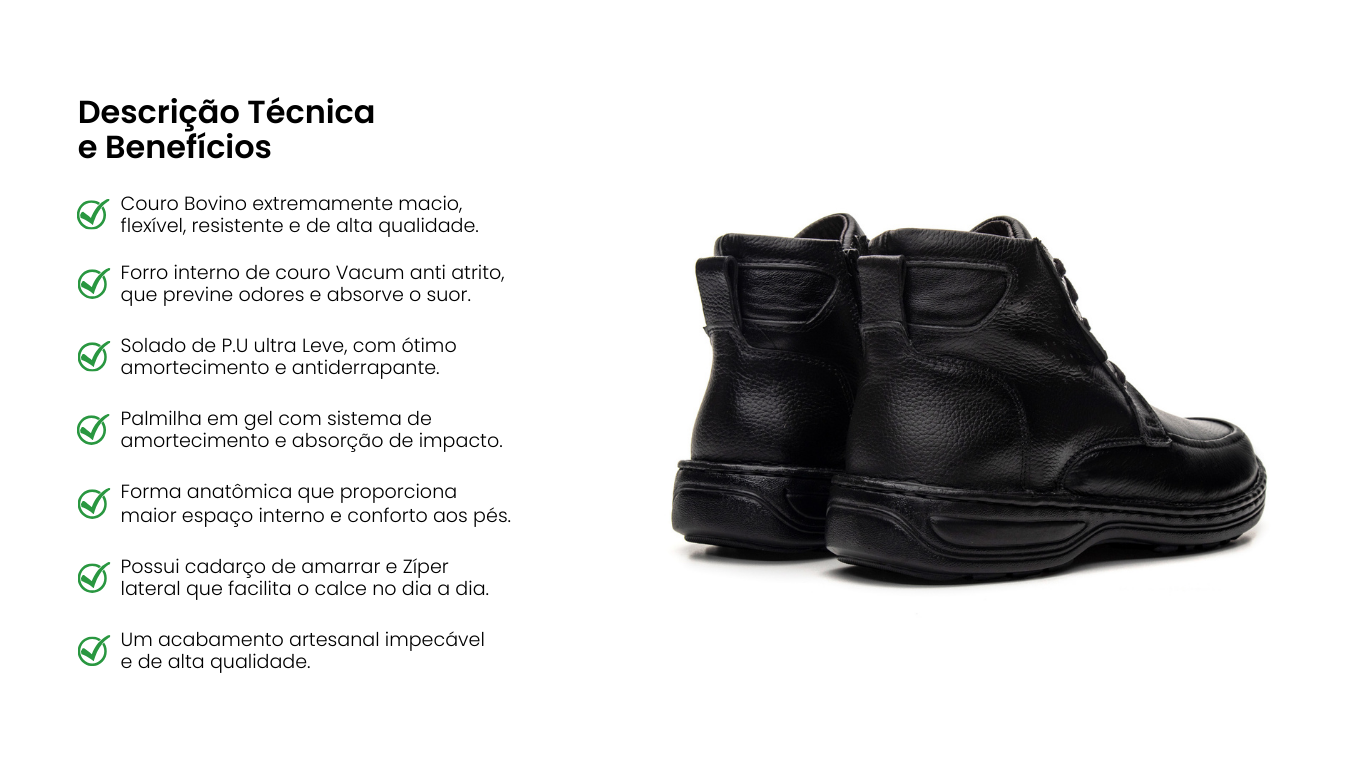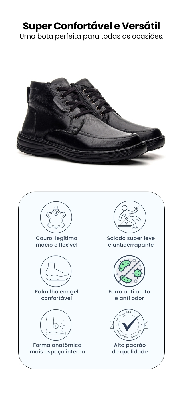 Bota Masculina De Couro Legitimo Comfort Shoes - CS83 Preta