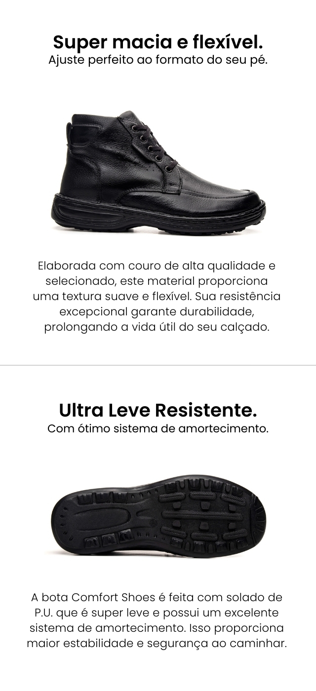 A Comfort Shoes é uma marca focada em oferecer calçados confortáveis e com qualidade Premium. Oferecemos produtos direto da fábrica, produzidos com matérias primas selecionadas e de extrema qualidade. Parcelamos sua compra em até 6x sem juros e enviamos para todo Brasil. Aproveite para fazer sua compra agora! Qualquer dúvida pode nos contatar em nossas centrais de atendimento!