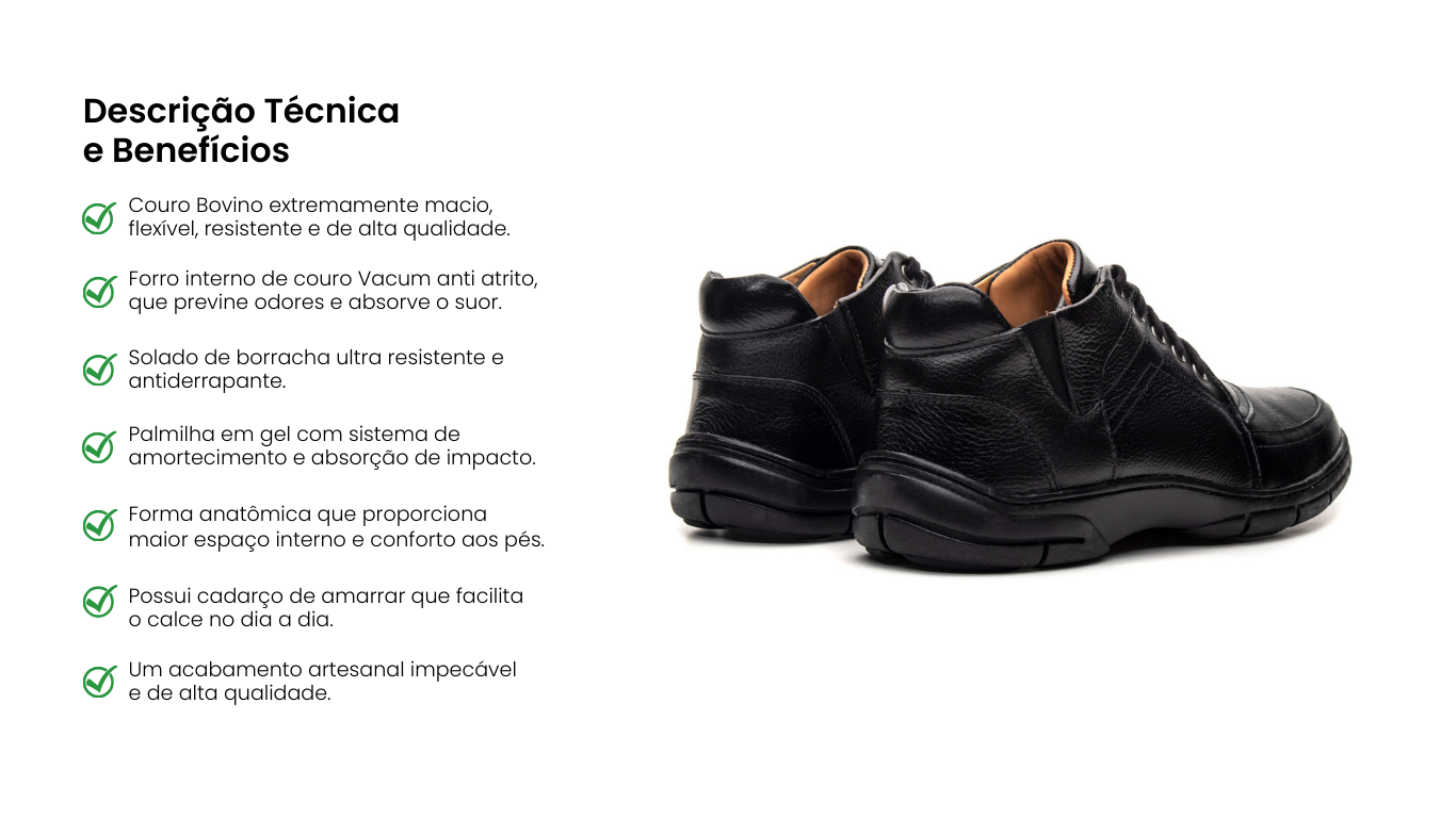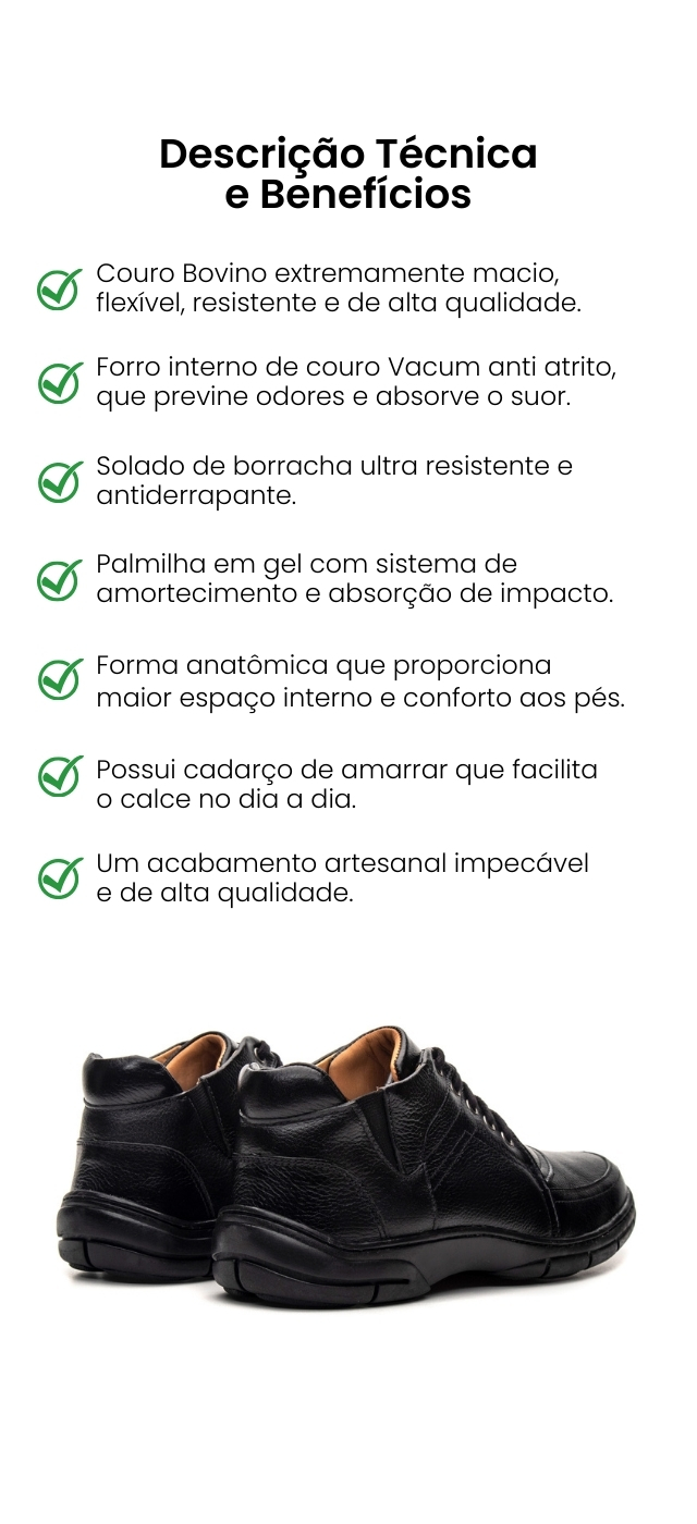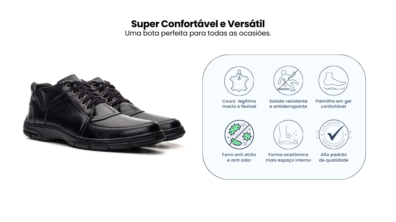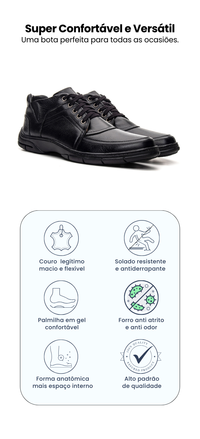 Bota Masculina de Couro Legítimo Comfort Shoes - 1405 Preta