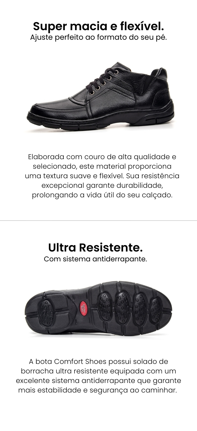 A Comfort Shoes é uma marca focada em oferecer calçados confortáveis e com qualidade Premium. Oferecemos produtos direto da fábrica, produzidos com matérias primas selecionadas e de extrema qualidade. Parcelamos sua compra em até 6x sem juros e enviamos para todo Brasil. Aproveite para fazer sua compra agora! Qualquer dúvida pode nos contatar em nossas centrais de atendimento!