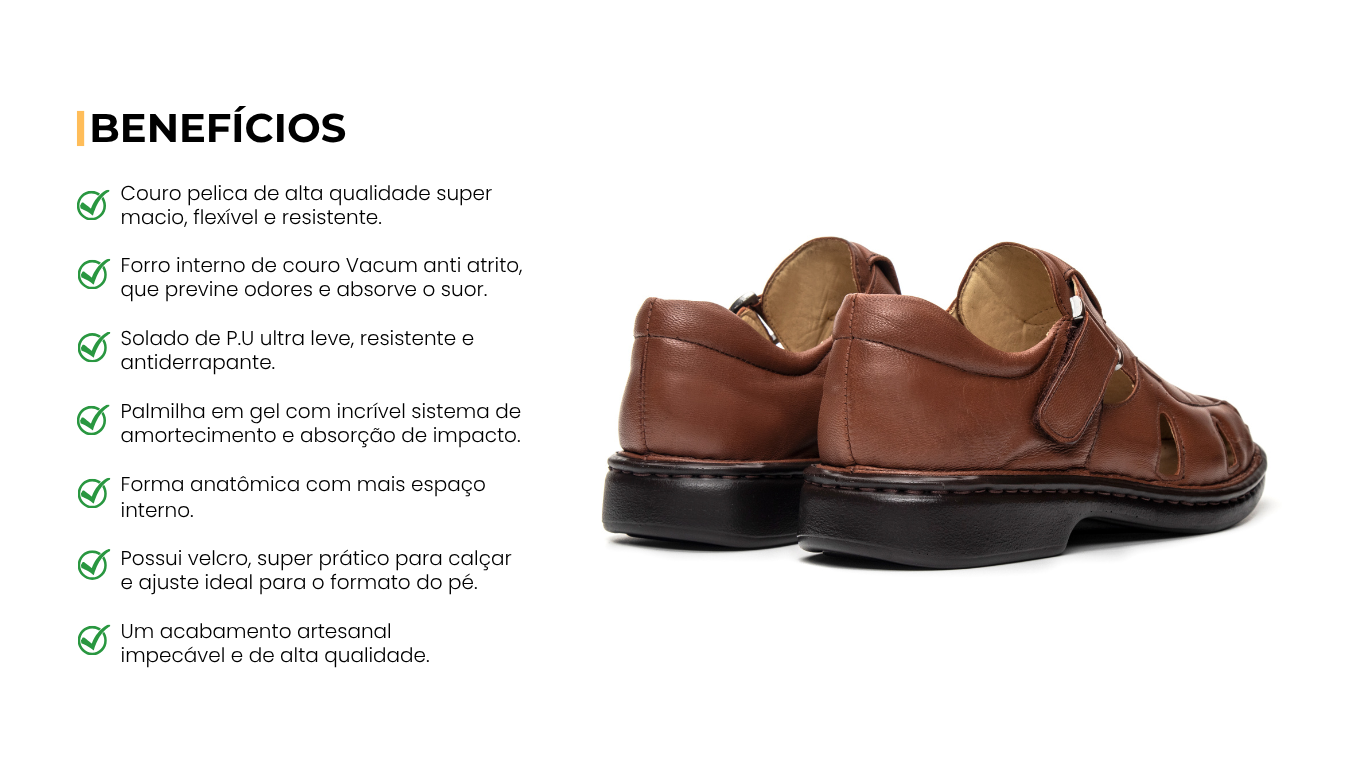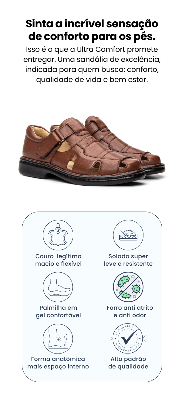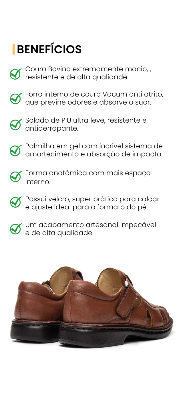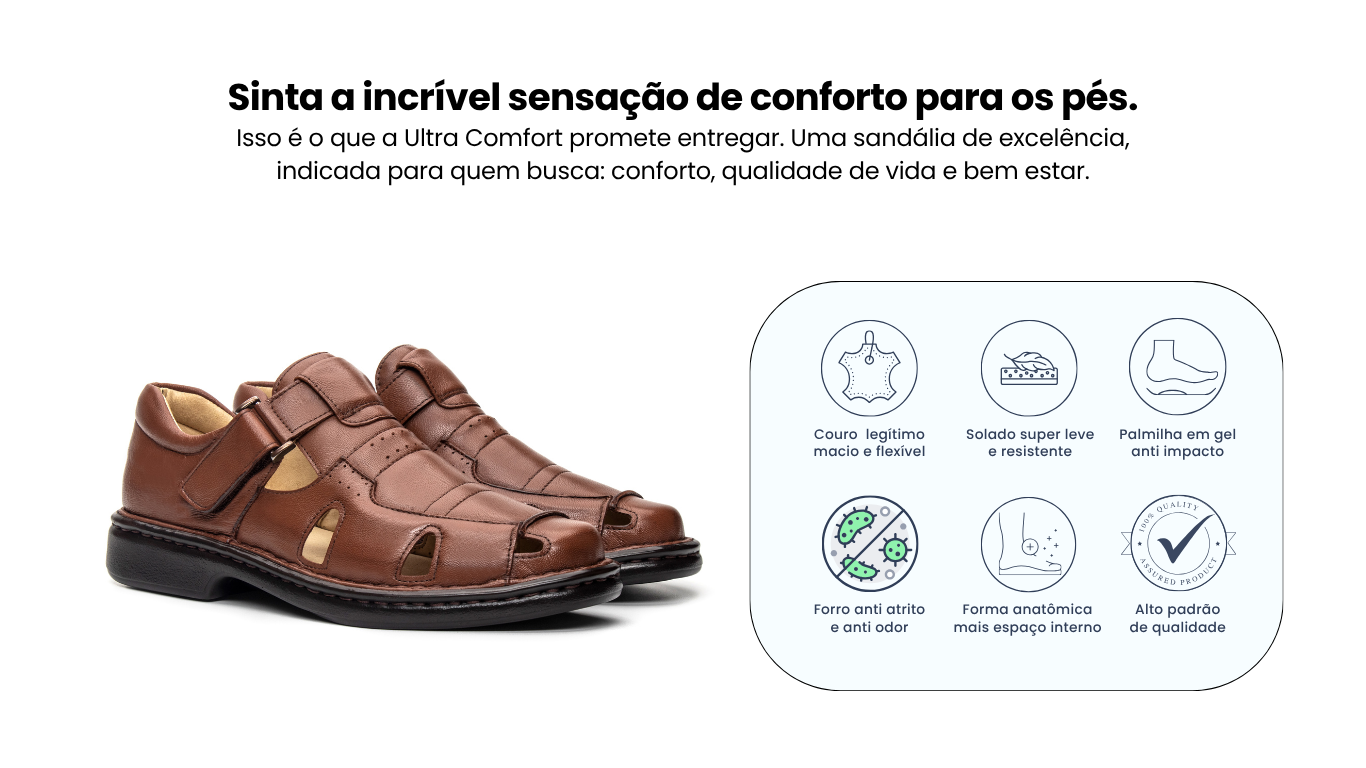 Sandália Masculina De Couro Legítimo Ultra Comfort - CS365 Havana