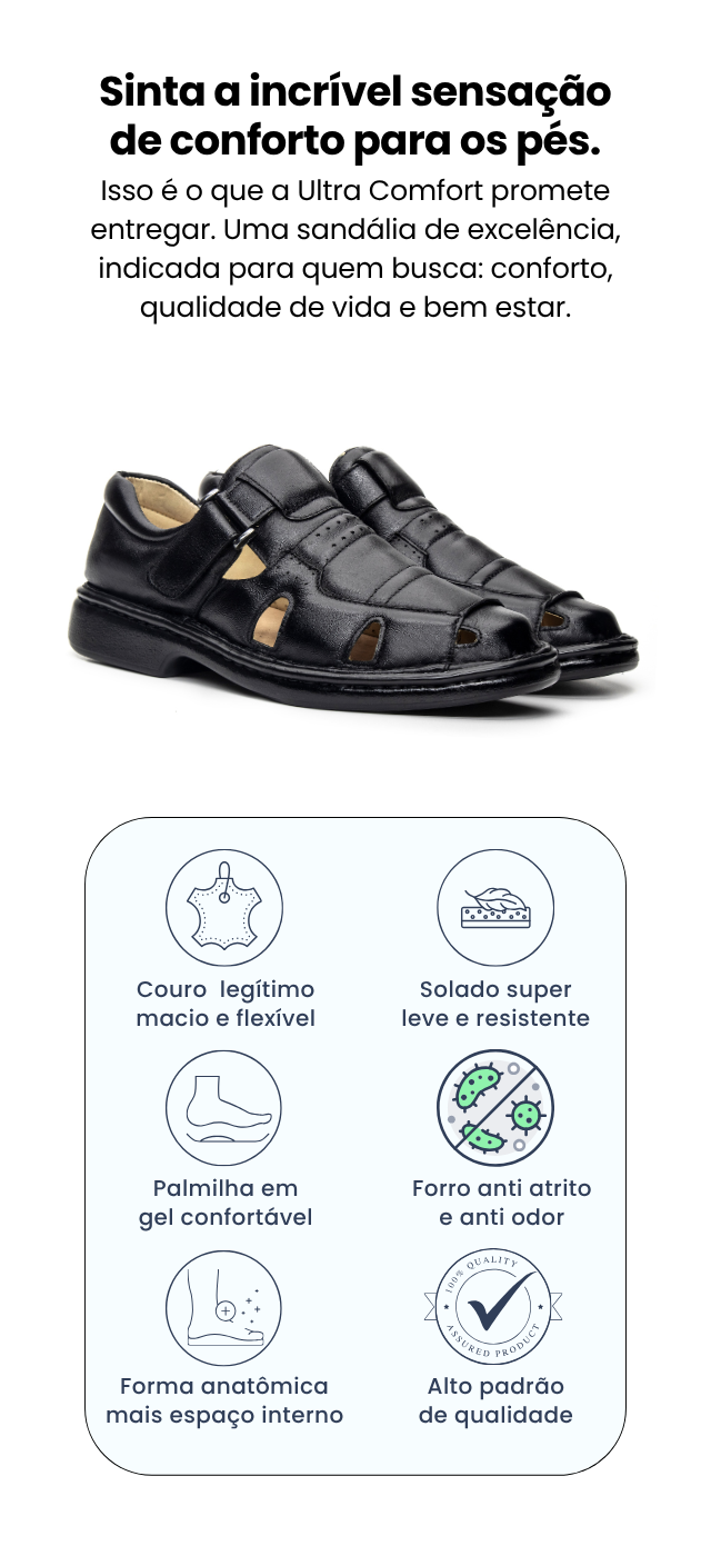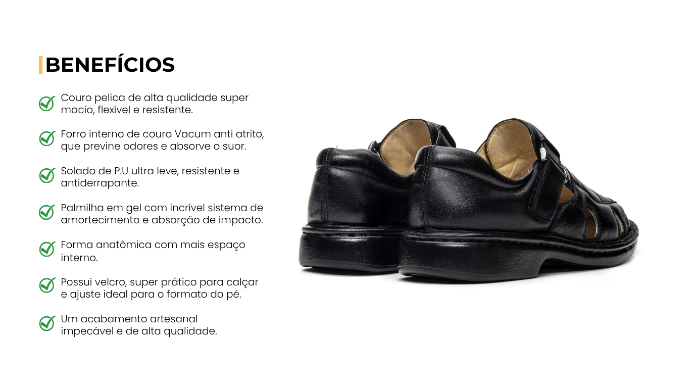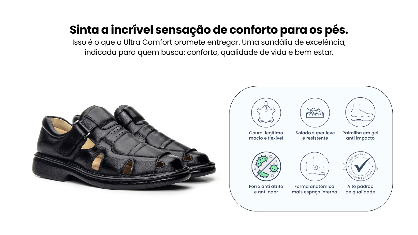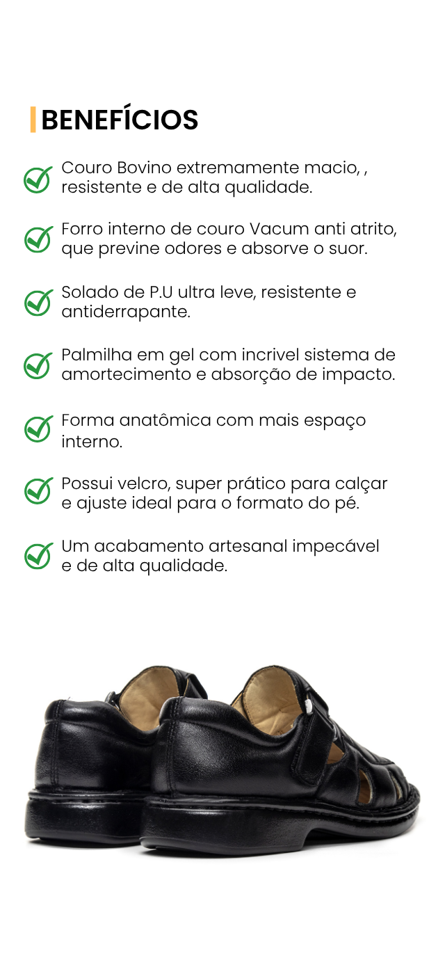 Sandália Masculina De Couro Legítimo Ultra Comfort - CS365 Preta