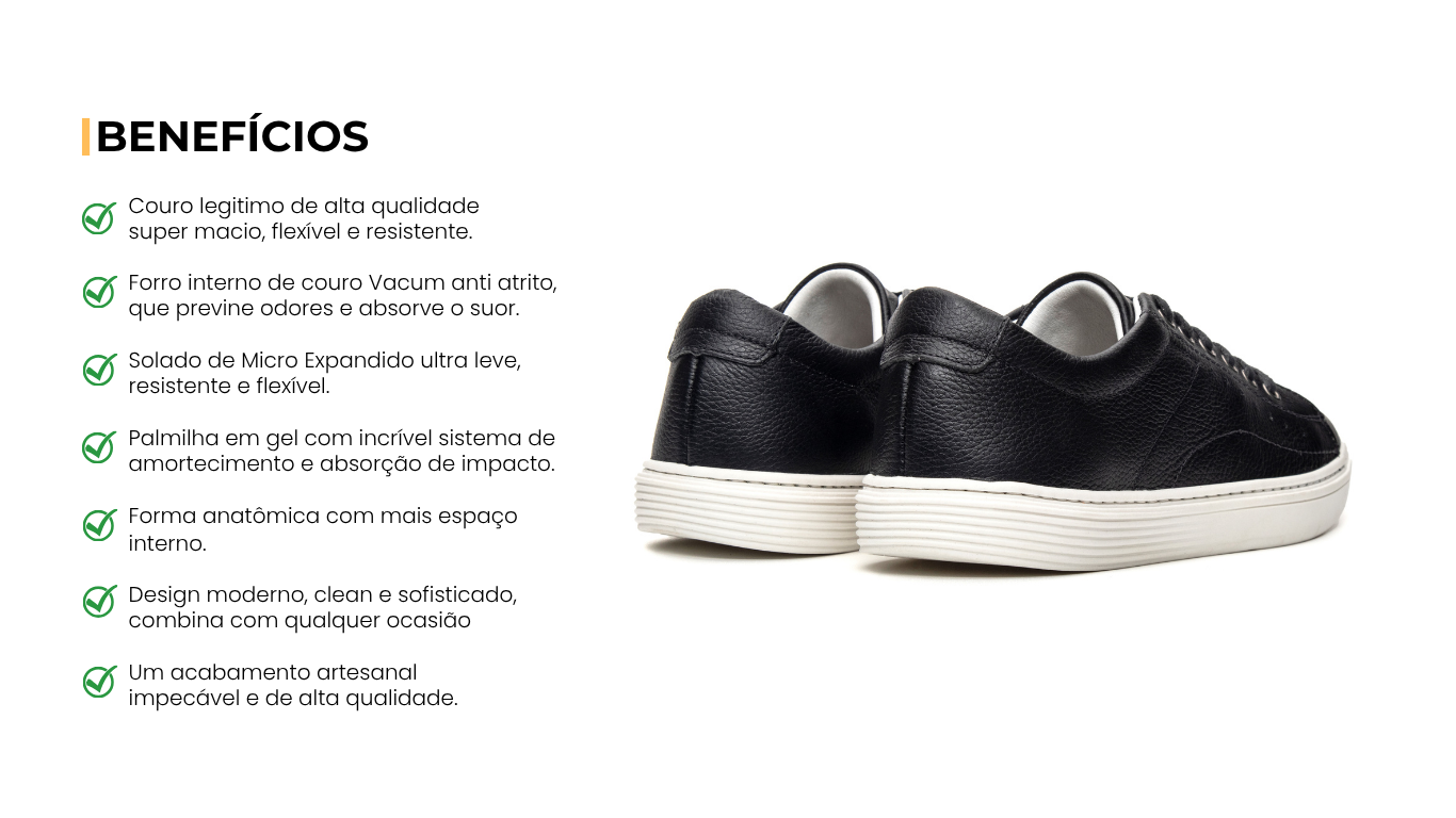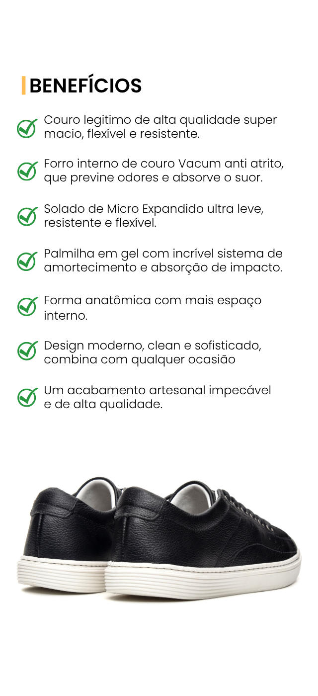 Tênis Casual Masculino De Couro Legitimo Comfort Shoes - 4050F Preto